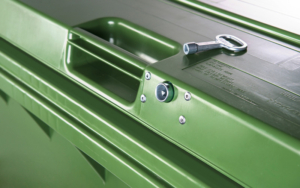 Ein hochwertiger 1100 Liter Kunststoffcontainer zur sicheren und geruchsarmen aufbewahrung von Abfällen.